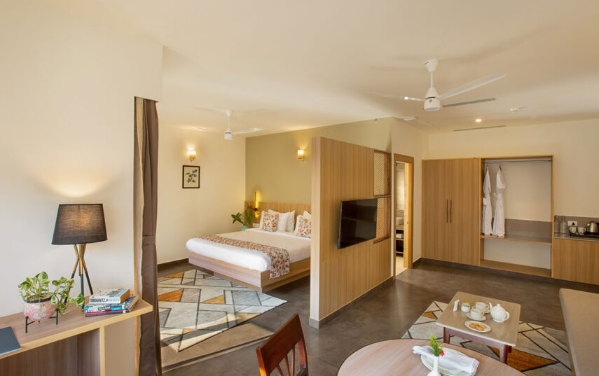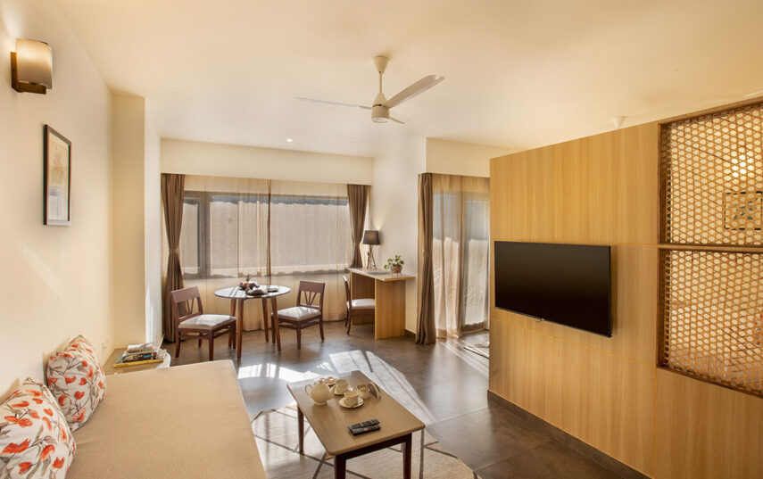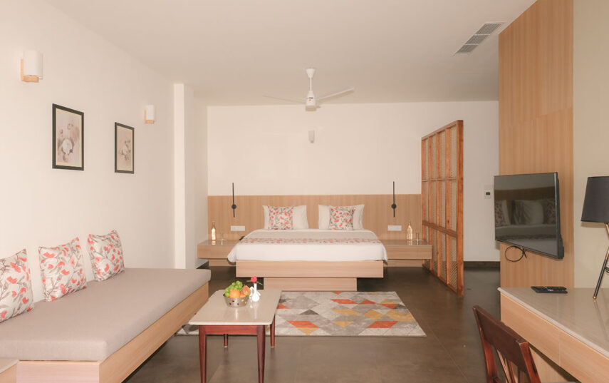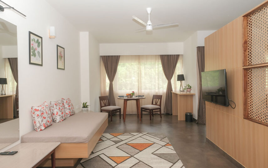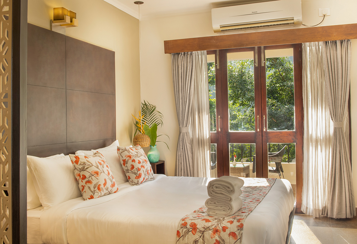 “Located in the Bougainvillea Block, Superior Rooms are forest-facing and filled with soft natural light. Designed with clean, modern interiors and warm detailing, these rooms offer a peaceful atmosphere ideal for guests seeking quiet comfort and a restorative retreat experience.”